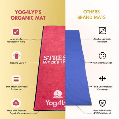 Stress Relief Quote 5 MM Red Cotton Yoga Mat